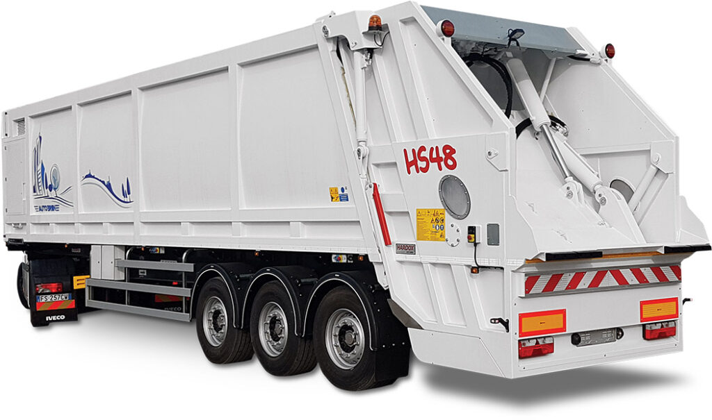 Compactor installed on semi-trailer. The latest addition to the Autobren family, this compactor stands out for its large load capacity, exceeding 48 cubic metres. It has a high power auxiliary motor, compliant with environmental regulations, which means it can perform well in terms of speed and strength. Built with extremely robust materials, its structure is fixed to the semi-trailer and can be removed. It is also equipped with an underbody weighing system.