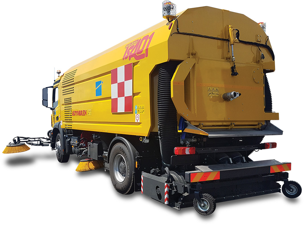 Specifically designed for airport areas, the TSA series is used on runways, taxiways and aircraft parking areas where cleaning must be rapid and widespread. TSA sweepers have won approval at both civil and military airports, proving very successful in cold areas of the world, where they are used for snow clearing operations and removing de-icing liquids. TSA sweepers can work efficiently up to 45 km / h thanks to the special shape of the suction vents and the simultaneous use of the central brush and the air recirculation vents.